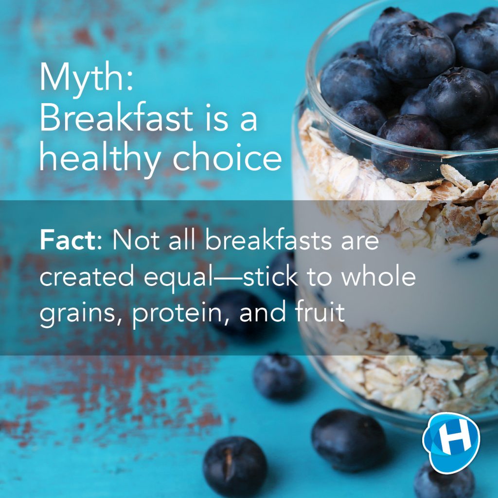Fact: Not all breakfast foods are created equal. The healthiest breakfasts include a balance of whole grain, protein, and fruit or 100 percent fruit juice.