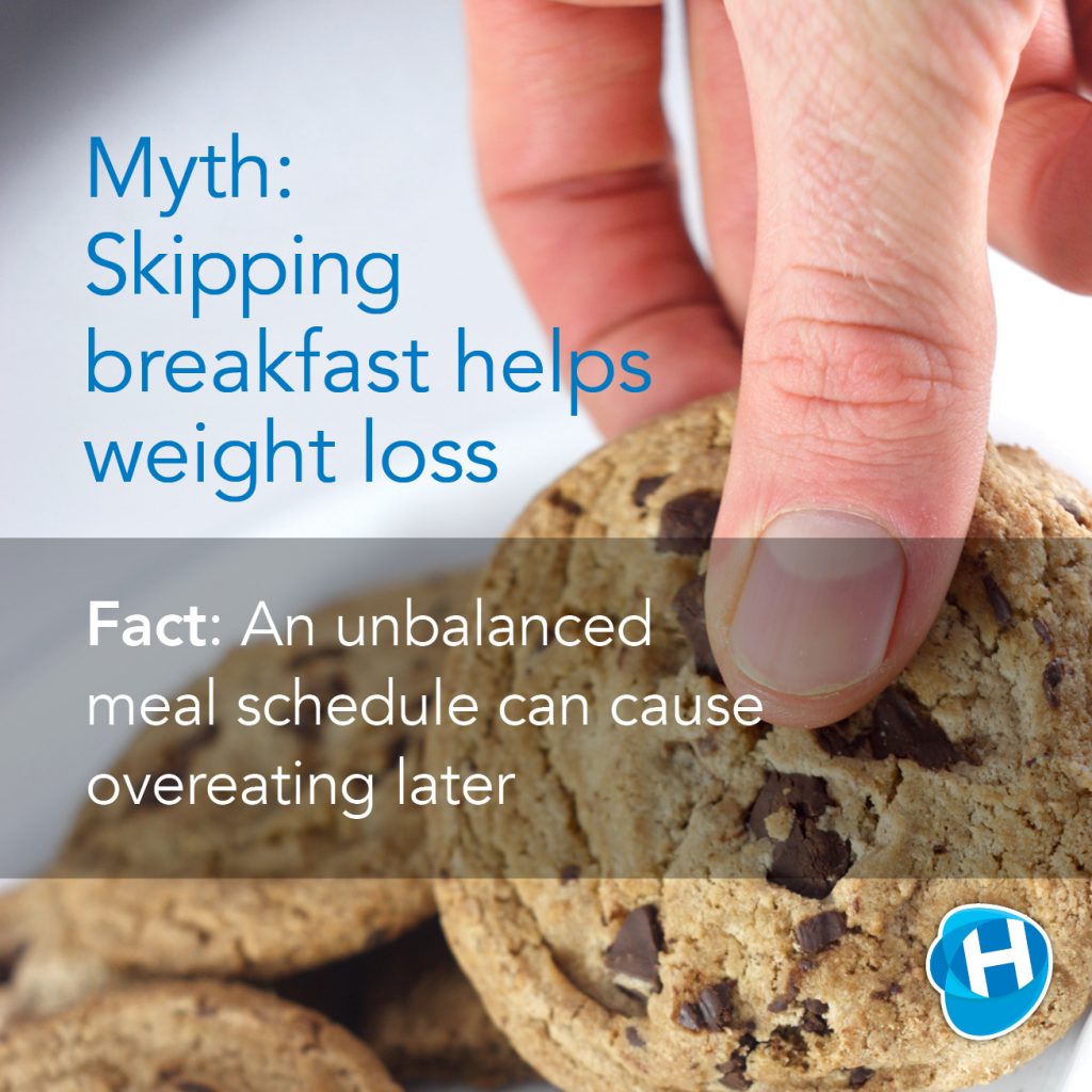 Fact: While cutting back on food consumption might seem like an obvious diet tip, some research indicates that skipping breakfast may hurt instead of help you by making you more likely to overeat later in the day. Instead, stick to a well-balanced, regular eating schedule that includes a healthy breakfast.