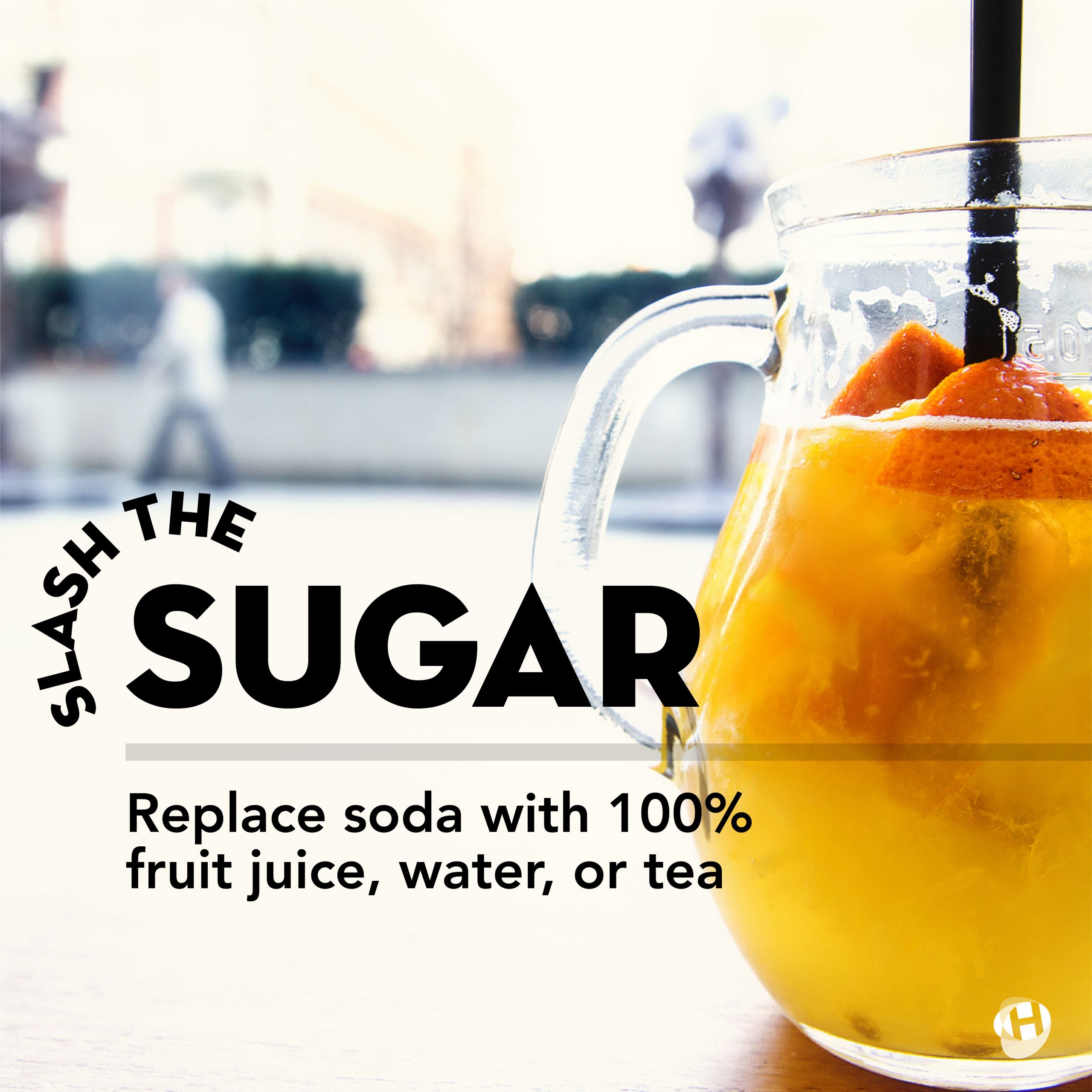 - Slash the Sugar: Replace sugary drinks with water, fat-free or low-fat milk, tea, or 100% fruit juice to quench your thirst and receive essential nutrients