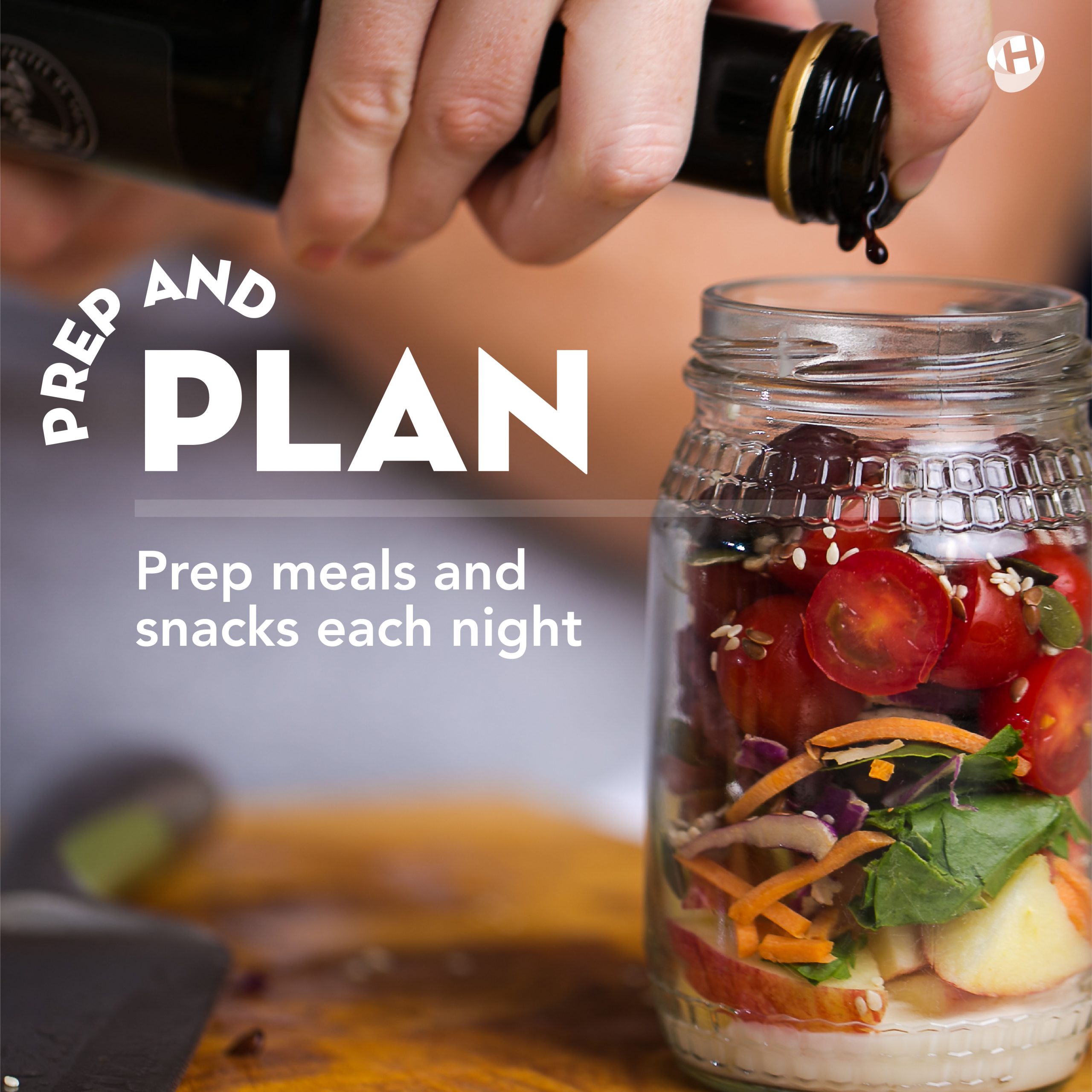 - Prep and Plan: Plan meals to ensure you’ll reach your three-meal-a-day mark while including choices from each food group—fruits, vegetables, whole grains, low-fat dairy, and protein